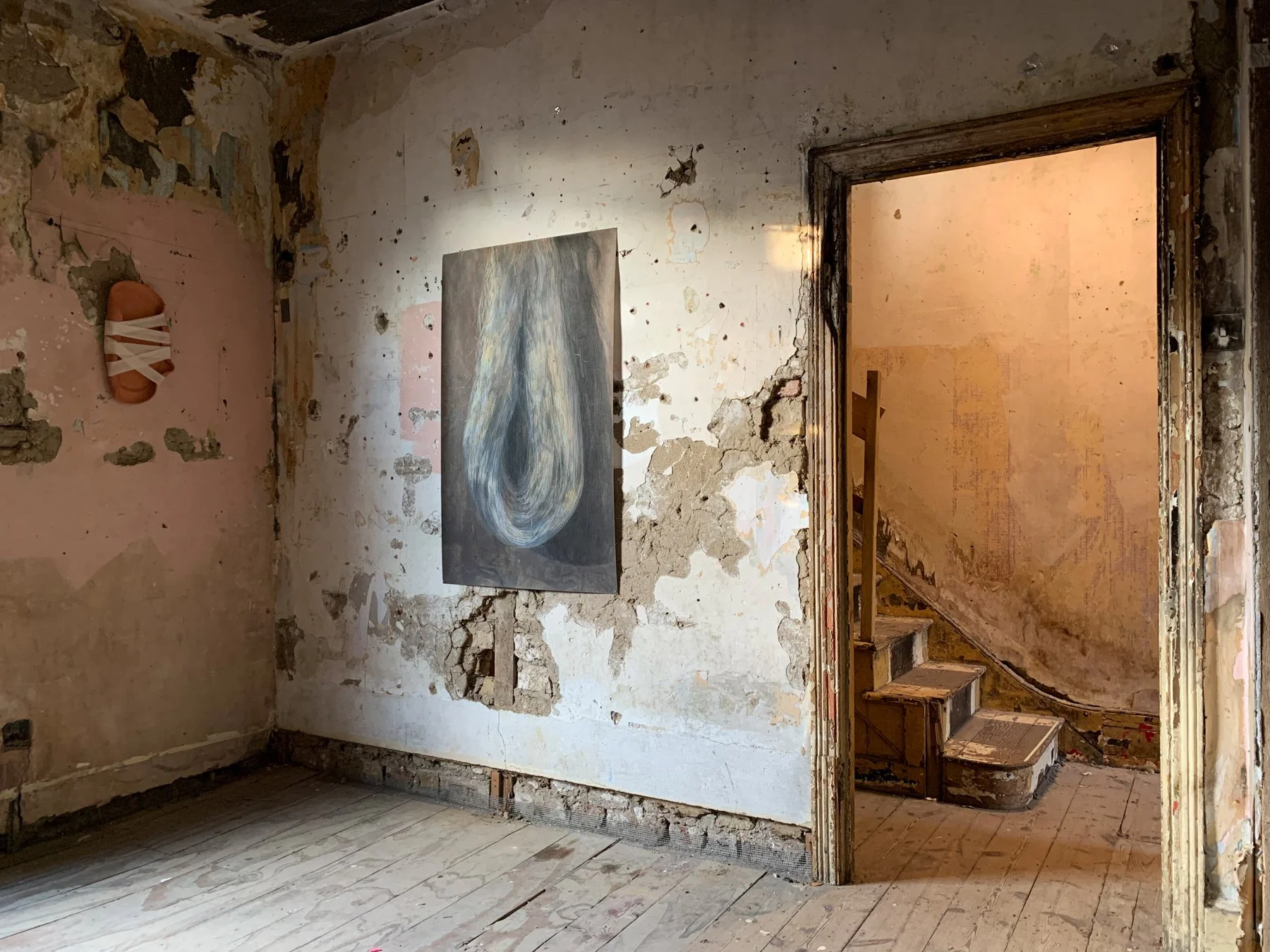 Compromised (2020), earthenware and cotton bandage, 28 x 56cm